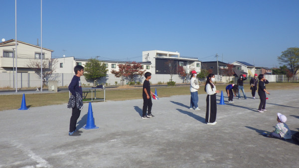 グループ単位でフリスビードッジをしたり、クラス単位でどろけい(泥棒と警察という鬼ごっこ)をしたりと楽しく過ごしています。6年生の児童がクラスごとに話し合って決めた遊びで、今後もまだ遊ぶ計画がされているようです。6年生が優しく1年生に声をかけたり、1年生が楽しめるように力加減を調整したりする微笑ましい姿が見られています。よい関わりに心がほんのり温かくなる交流会になっています。