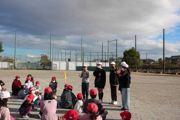「ふえ鬼」は、1年と6年のペアになって手をつないだ鬼が手をつないだペアの鬼でない他の子どもたちを追いかけます。手をつないだペアの一人がタッチされたらどちらも鬼になり、捕まっていない子を追いかけるという鬼ごっこです。どちらの鬼ごっこもとても楽しそうでした。